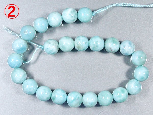 ラリマー(05)半連 2A−8.3mm現品 平均仕上り寸法 約 φ8.2〜8.4(mm) 現在メーカーで販売されている連の中で最高級の品質のものから選んできたものです。 ご希望の商品の番号を「買物カゴ」備考欄にご記入下さい。 @約20.5g、約19.8cm(24玉) A約20.4g、約19.6cm(24玉) 原石時のごく薄いグレー掛かった部分を持つ玉も含まれますが、全体的に綺麗なライトブルーとわずかにグリーン掛かっている感じのする色合いをもっています。 実物の状態に近付くように撮影しておりますが、モニター等の環境によって多少の濃淡の違いなどが出てきます。予めご了承下さい。 |