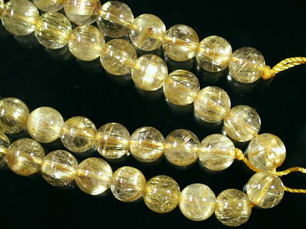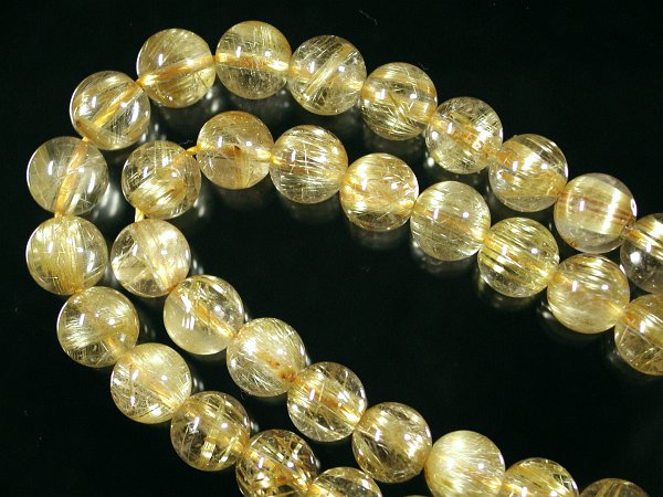 特価ゴールデンルチル(8) 4A8mm現品 仕上り寸法 約 φ7.9〜8.2(mm) 長さ 約 40.6cm 重量 約 38.41g このグレードのタイチンルチルは連状で求めるのは難しく、ほとんどブレスなどの製品にされて販売される商品です。ブレス商品の中でで同じ径の物を集めて一連にしたもので、できるだけタイチンの状態の同じものを集めて連にしてもらいましたが、違った状態のものも少し混ざっている場合があります。ご了承下さい。 透明度が高く、輝きも掲載分の中で1,2の綺麗さです。 1ミリのシリコンゴムが通ります。 撮影用の照明で輝きが増しております。照明を近づけるか自然光に当てて見た状態に近い画像で、ルチルが多いほど輝きが拡散されて透明部分まで金色掛かって見えています。 この商品は特価品の為、割引対象外商品となります。送料無料は適用されます。 |