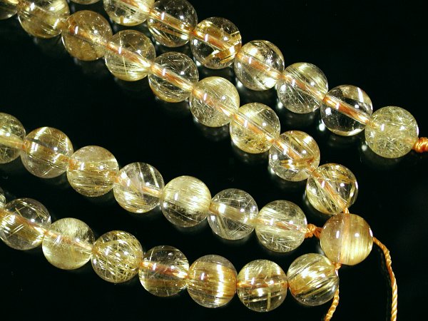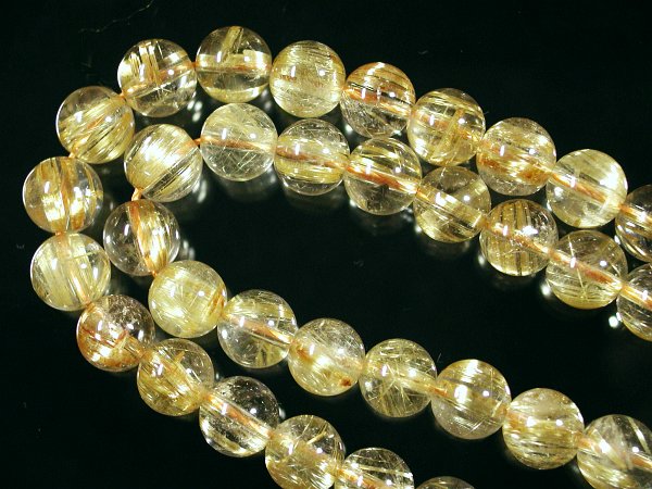 特価ゴールデンルチル(10) 4A8mm現品 仕上り寸法 約 φ7.9〜8.2(mm) 長さ 約 40.7cm 重量 約 38.51g このグレードのタイチンルチルは連状で求めるのは難しく、ほとんどブレスなどの製品にされて販売される商品です。ブレス商品の中でで同じ径の物を集めて一連にしたもので、できるだけタイチンの状態の同じものを集めて連にしてもらいましたが、違った状態のものも少し混ざっている場合があります。ご了承下さい。 透明度が高く、輝きも掲載分の中で1,2の綺麗さです。 1ミリのシリコンゴムが通ります。 撮影用の照明で輝きが増しております。照明を近づけるか自然光に当てて見た状態に近い画像で、ルチルが多いほど輝きが拡散されて透明部分まで金色掛かって見えています。 この商品は特価品の為、割引対象外商品となります。送料無料は適用されます。 |