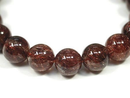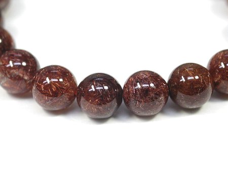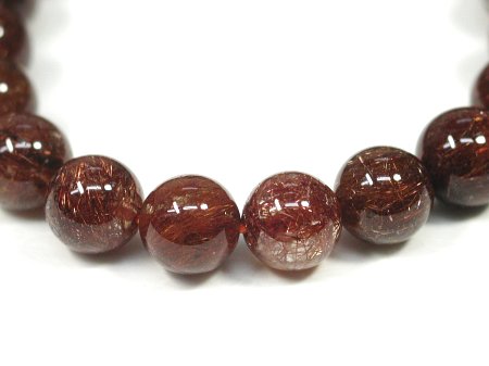 濃い目ですが輝きのあるゴールデンレッドルチルの玉の多いブレスです。