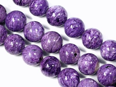 この色合いのチャロアイト丸玉は、ほとんど見かけることがなくなってきました。今では絹糸光沢の見られる高級ビーズです。