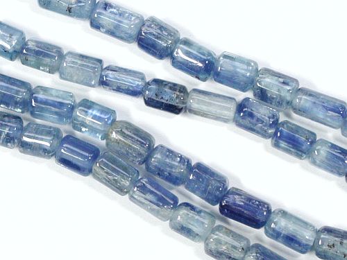 径3〜4.5mm 長さ4.5〜8mm でグラヂュエイションになっている照りのあるメーカー表示AAA++のカイヤナイトです。カイヤナイト特有の筋状のものは若干見えますが、黒い部分は少ないほうです。