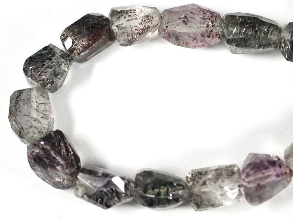 スーパーセブン・タンブル(3) 平均仕上り寸法 約 7x8x11(mm) 長さ 約 21cm 重量 約 120.39ct 連を崩して細部までのチェックはしておりませんので、原石時の状態の残っている物がたまに見受けられたり、研磨剤の残っている(画像でグリーン掛かって見えるところ)ものが稀に有ります。ご容赦願います。 アメジスト、レピドクロサイト、ゲーサイト、カコクセナイト、ルチル、スモーキークォーツ、クリアクォーツ、がひとつの水晶の中に内包されているものをスパーセブンと呼んでいますが、実際に7種類内包されているものはほとんどありません。しかし、これらの幾つかを内包しているだけでもパワーに変りは無いとされ、人気を博しているパワーストーンでもあります。 ワイヤー仕様となります。 |