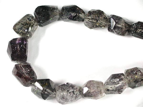 スーパーセブン・タンブル(5) 平均仕上り寸法 約 8x9x11(mm) 長さ 約 21cm 重量 約 122.84ct 連を崩して細部までのチェックはしておりませんので、原石時の状態の残っている物がたまに見受けられたり、研磨剤の残っている(画像でグリーン掛かって見えるところ)ものが稀に有ります。ご容赦願います。 アメジスト、レピドクロサイト、ゲーサイト、カコクセナイト、ルチル、スモーキークォーツ、クリアクォーツ、がひとつの水晶の中に内包されているものをスパーセブンと呼んでいますが、実際に7種類内包されているものはほとんどありません。しかし、これらの幾つかを内包しているだけでもパワーに変りは無いとされ、人気を博しているパワーストーンでもあります。 ワイヤー仕様となります。 |