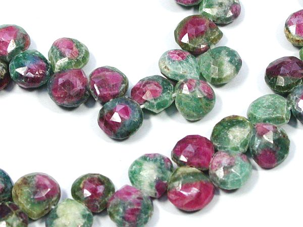 ゾイサイトでブルーの透明の物はタンザナイトと呼ばれますが、緑のアニョライトにルビーの含まれた物はルビーインゾイサイトと呼ばれ装飾用に多く使用されています。その中でもルビーが中ほどに位置するように特に装飾用に加工されたものです。