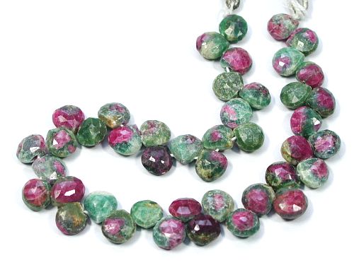 ゾイサイトでブルーの透明の物はタンザナイトと呼ばれますが、緑のアニョライトにルビーの含まれた物はルビーインゾイサイトと呼ばれ装飾用に多く使用されています。その中でもルビーが中ほどに位置するように特に装飾用に加工されたものです。