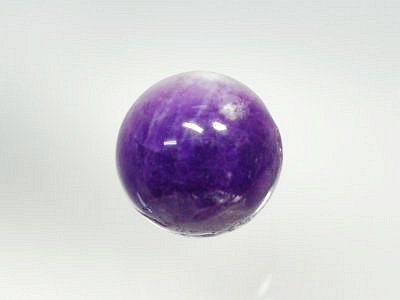 通常の照明下では白に少し紫の混ざった感じの色合いのハックマナイトですが、ブラックライトの照射によって少し濃い目の紫に変っていきます。原石時の細いラインもあります。