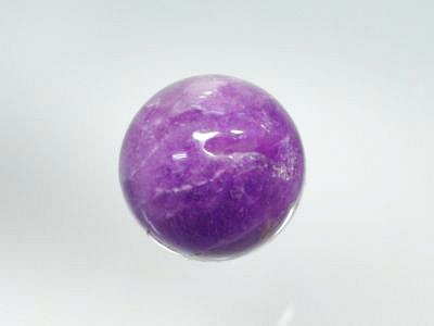 通常の照明下では美しいラベンダー色をしているのですが、穴の近くに原石時の溝が見られます。ブラックライトの照射によっても綺麗な紫色に少し変化していきます。見る角度によってはこの溝も隠れます。