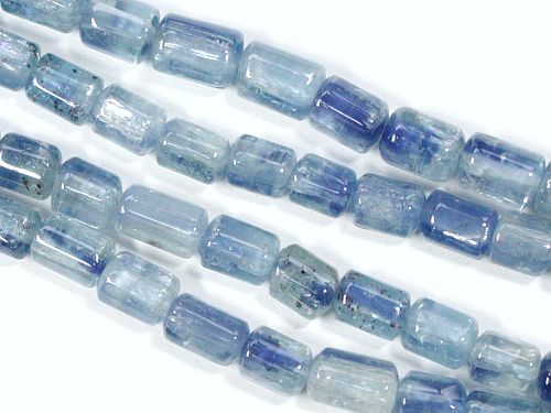 径4.5〜5.5mm 長さ4.5〜7.5mm でグラヂュエイションになっている照りのあるメーカー表示AAA++のカイヤナイトです。カイヤナイト特有の筋状のものは若干見えますが、黒い部分は少ないほうです。