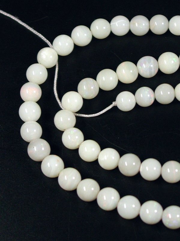 そうした数少ない中で求めてきたホワイトオパールですが、遊色は多くはありませんが見えています。この程度でもラウンドビーズとしては良い方になります。