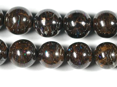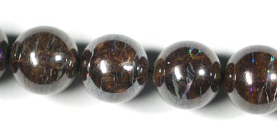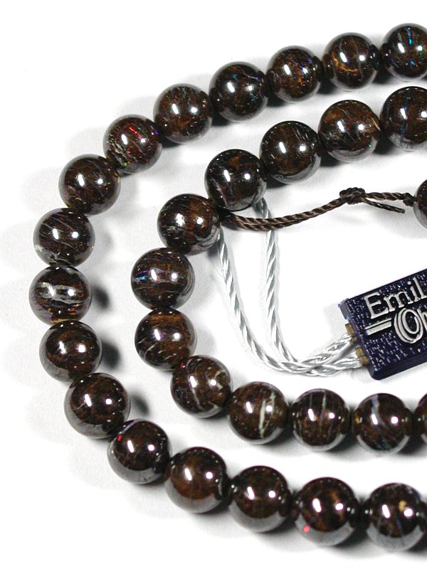 そうした数少ない中で求めてきたボルダーオパールですが、遊色は多くはありませんが見えています。ラウンドビーズとしては珍しいものになります。