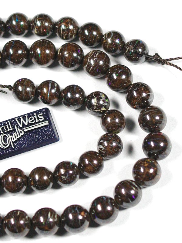 オパールには遊色による美しい輝きが皆様を魅了し、特に人気のある宝石でもありますが、丸玉ビーズに加工されるのは極めて稀で、また遊色効果のあるものを丸玉にすることはほとんどありません。手間をかけて研磨して遊色が見られるかどうか分からないものを作るよりも、見えている物を取り出してアクセサリーなどにする方がはるかに楽で効率の良い事は誰しもが気付くはずです。