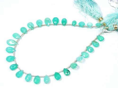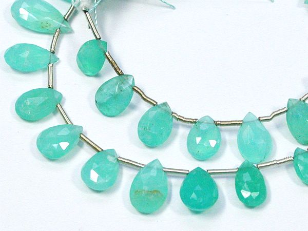 高価で珍しいブルーオパールのフラットドロップカットです。半透明で綺麗な色合いですが、若干インクルージョンのある物も含まれます。鉱物的にもこの色合いは非常に稀少とされています。