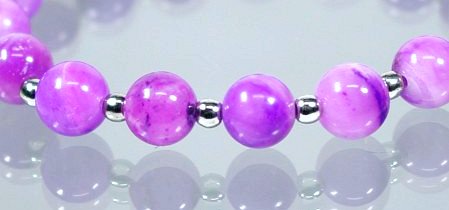 光を透して見ると更に美しいラベンダー色に見えるトップグレードのラリマーにシルバー色の3ミリボール(メッキ品)を入れてみました。101 とペアーで如何でしょうか。